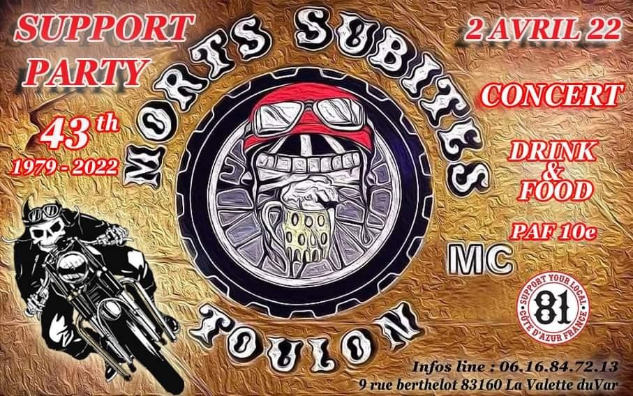 Fondé en 1979 le Morts Subites MC est l'un des plus ancien club de France situé 9 rue Berthelot 83160 La Valette-du-Var. Il fêtera en 2026 ses 47 ans